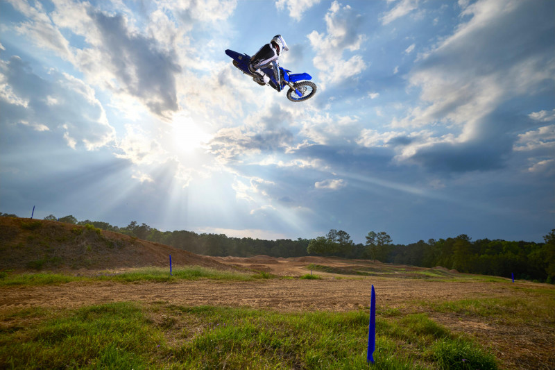 Les organes internes du moteur ultra légers et le fameux système YPVS (Yamaha Power Valve System) de Yamaha, qui dope le couple, garantissent une puissance élevée, tandis que la carrosserie ultra fine vous confère un haut niveau de contrôle, aussi bien au sol que dans les airs. Lorsque vous freinez et accélérez fort, la selle plate et la position conçue pour la compétition permettent un transfert facile du poids du corps sur la moto au moment où vous entrez dans la victorYZone !